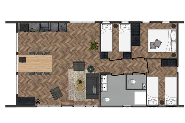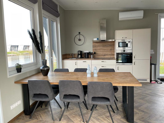 Offener Wohn- und Essbereich mit Klimaanlage und Smart-TV // 3 Schlafzimmer (1x mit einem Doppelbett und 2x mit jeweils 2 Einzelbetten) // 1 Bad mit Regendusche und WC // 1 separates WC // Moskitoschutznetze an allen Schlafzimmer- und Badezimmerfenster // Küche mit Induktionsherd, Geschirrspüler, Backofen, Mikrowelle, Filterkaffeemaschine, Kühl- und Gefrierschrank, Wasserkocher, Toaster // Garten mit Terrasse, Grill, Gartenmöbeln, Palettencouch, 2 Sonnenliegen, 2 Sessel, Sonnenschirm und eigenem Bootssteg (24qm) // Hundenäpfe für Futter und Wasser // Parkplätze in unmittelbarer Nähe // Umzäuntes Grundstück (1m hoch) // Stand-Up-Paddleboard nach Jahreszeit // gratis WLAN // Föhn